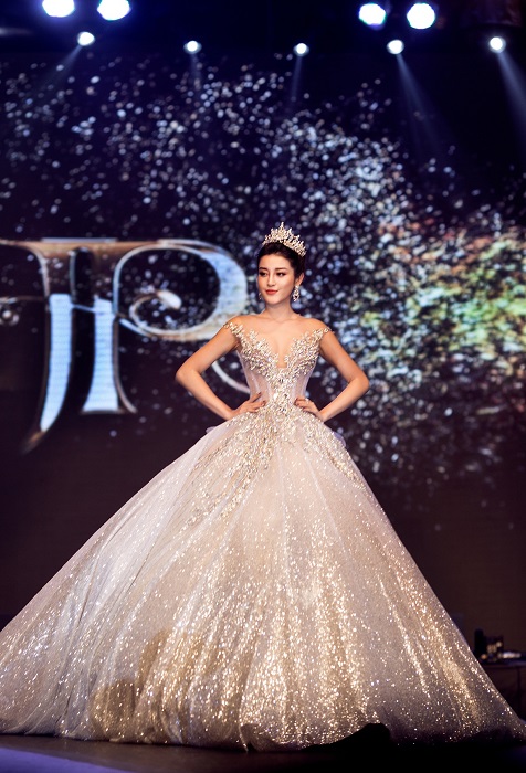 Kết thúc BST của JoliPoli là Á Hậu Huyền My - Miss Grand VietNam 2017. Khoác lên mình chiếc váy bồng màu bạc trắng lung linh nặng đến 25 kg, Huyền My biến thành nàng công chúa bước ra từ cổ tích.