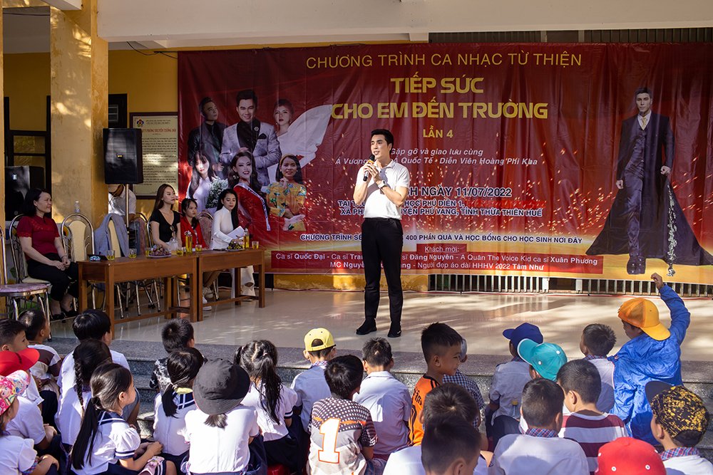 (ĐSVH) Chiều ngày 11-07-2022, Á vương châu á Quốc tế - diễn viên Hoàng Phi Kha đã có mặt tại trường tiểu học Phú Diên 1 của xã Phú Diên, huyện Phú Vang, tỉnh Thừa Thiên Huế để gặp gỡ, giao lưu và truyền cảm hứng cho các em học sinh nghèo