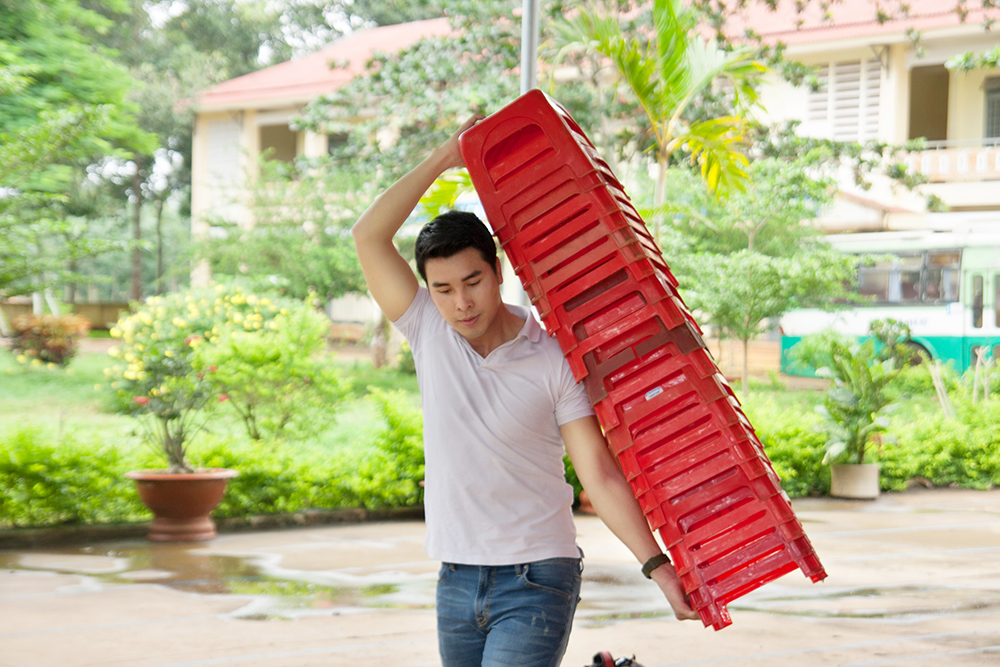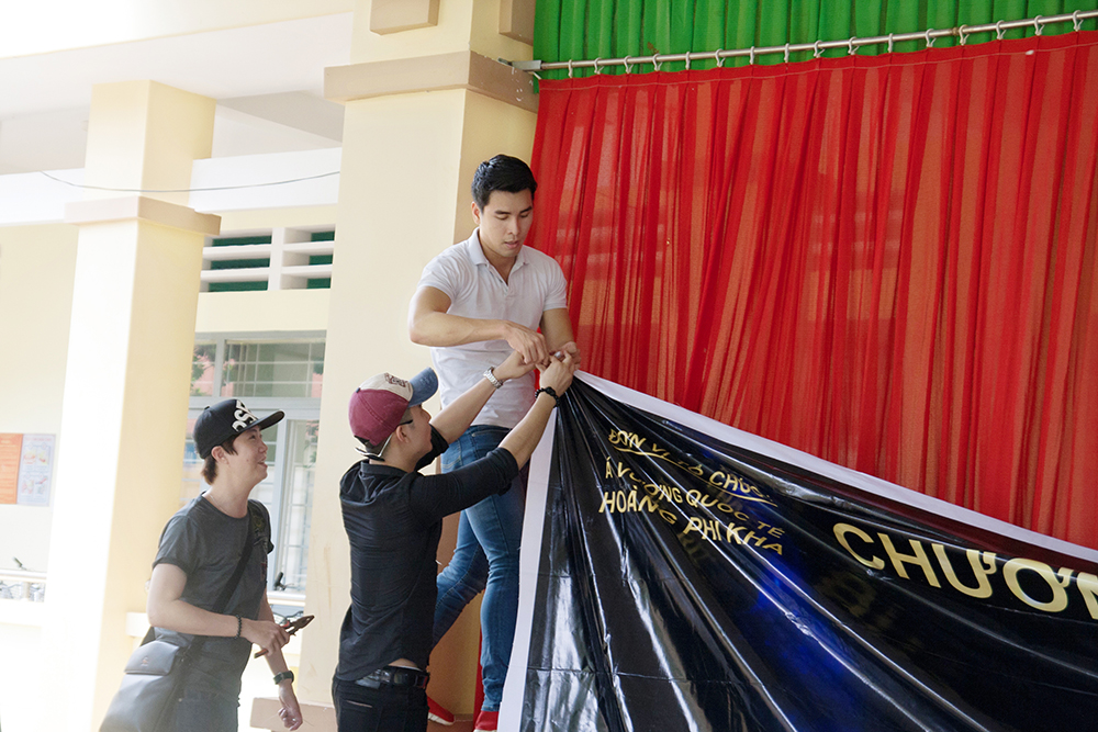 Nam đạo diễn Tình Yêu Lạc Lối còn tự tay treo băng rôn của chương trình "Tiếp Sức Cho Em Đến Trường"