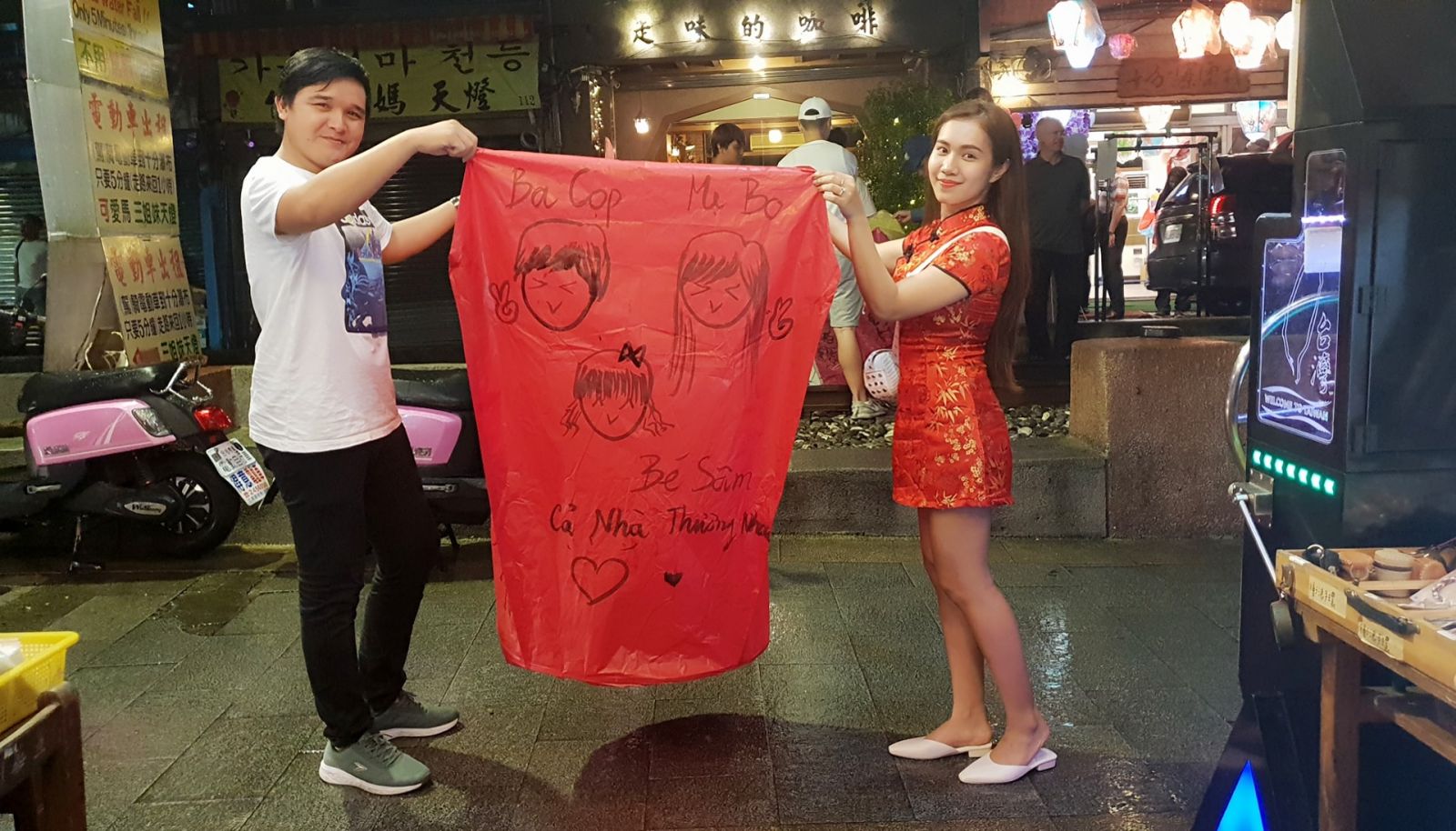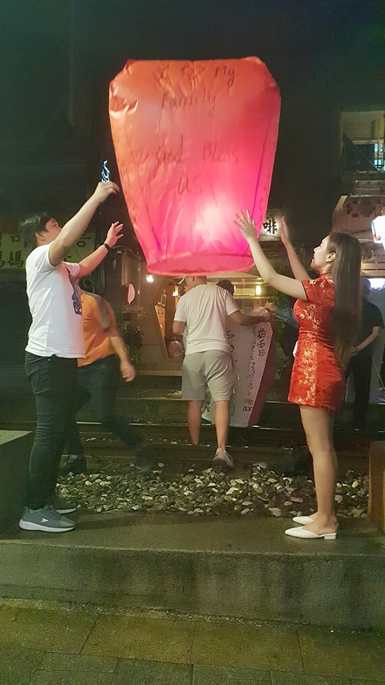 Hai vợ chồng dành thời đến Thập Phần để thả đèn trời rất dễ thương. Theo chia sẻ của hai vợ chồng nếu bạn viết điều ước lên đèn và thả lên trời, cầu nguyện thật thành tâm khi chuẩn bị thả đèn, điều ước sẽ thành hiện thật.