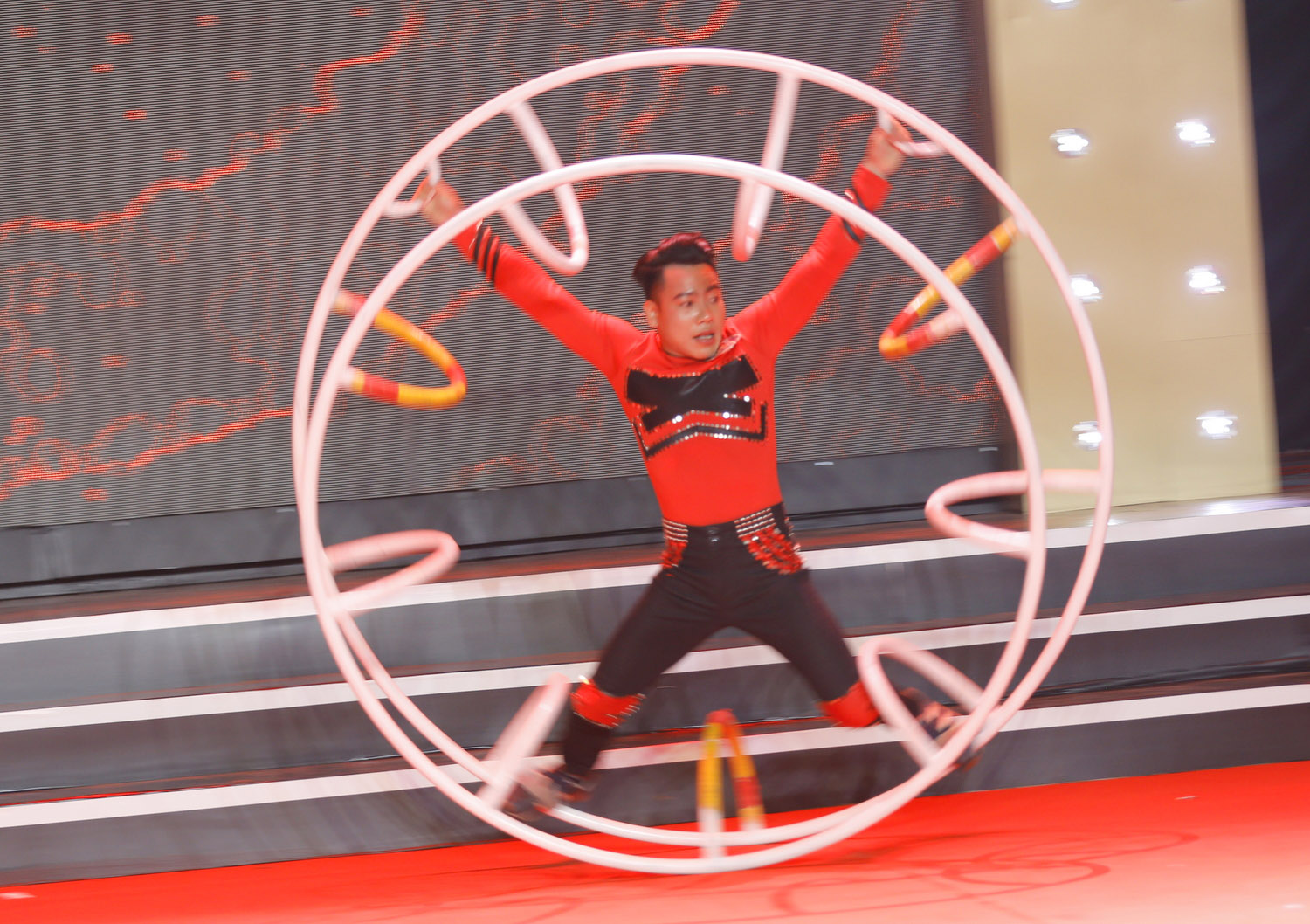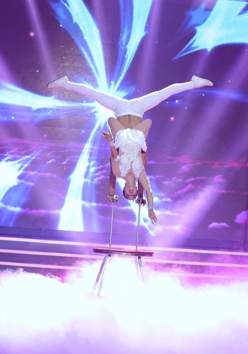 Trong tiết mục, Trịnh Thắng thể hiện khả năng giữ thăng bằng bằng đôi tay trong tư thế chổng ngược đầu và nâng đỡ cho nữ diễn viên xiếc trên người.