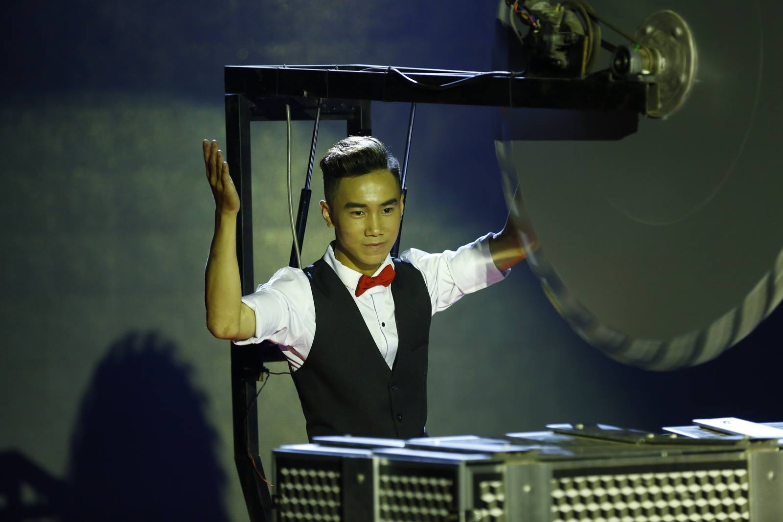 Trong đêm đầu tiên tái ngộ với khán giả của Kỳ Tài Lộ Diện, ảo thuật gia 18 tuổi đã tái hiện tiết mục ấn tượng nhất của mình ở mùa 1 đó là cưa đôi người làm 2, tách rời phần thân trên và phần thân dưới.