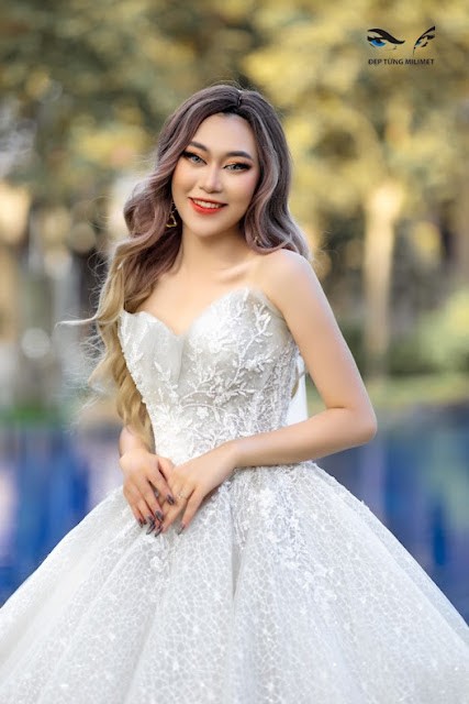 Đàm Nhật Lệ lỗng lẫy trong trang phục váy cưới Tây tại phần thi chung kết, Model Lam Phượng
