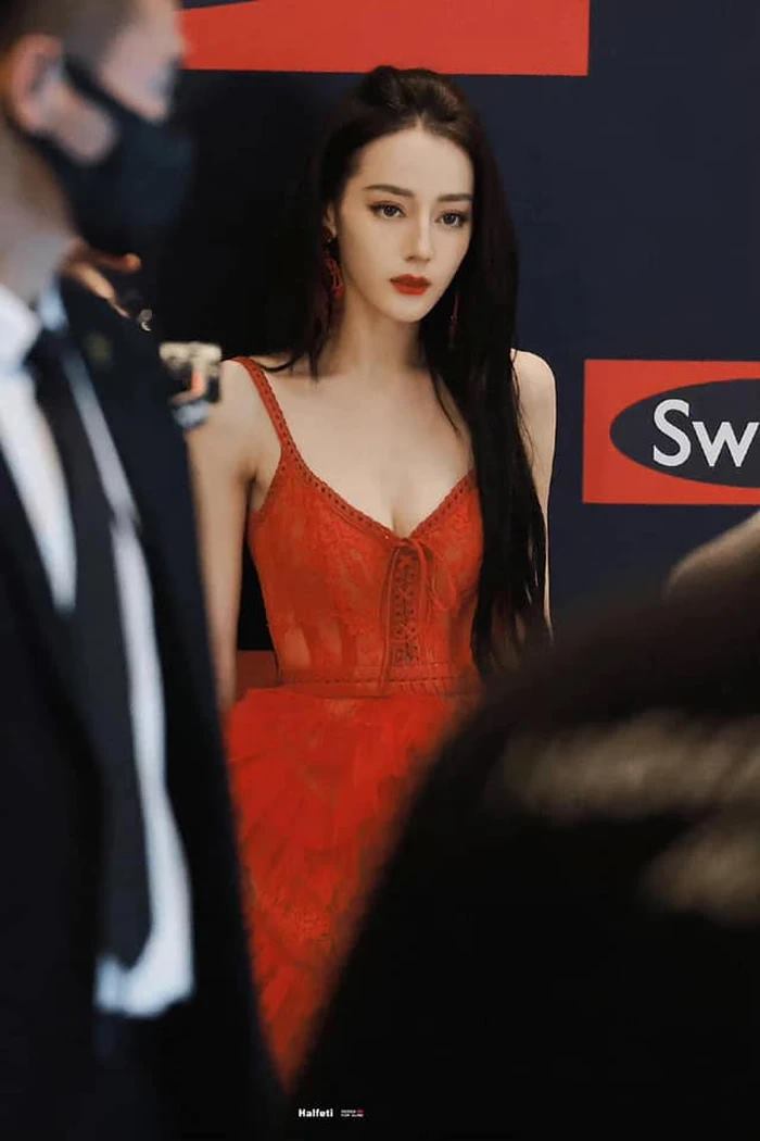 Sở hữu nước da trắng ngần cùng mái tóc đên dài tự nhiên, Địch Lệ Nhiệt Ba nhìn cực kỳ nổi bật trong chiếc váy hai dây màu đỏ. Kèm theo đó là phần chân thân và đuôi váy voan sắp đặt bồng bềnh, khiến cô nàng nhẹ nhàng, thanh lịch lại vô cùng sang trọng, gợi cảm.