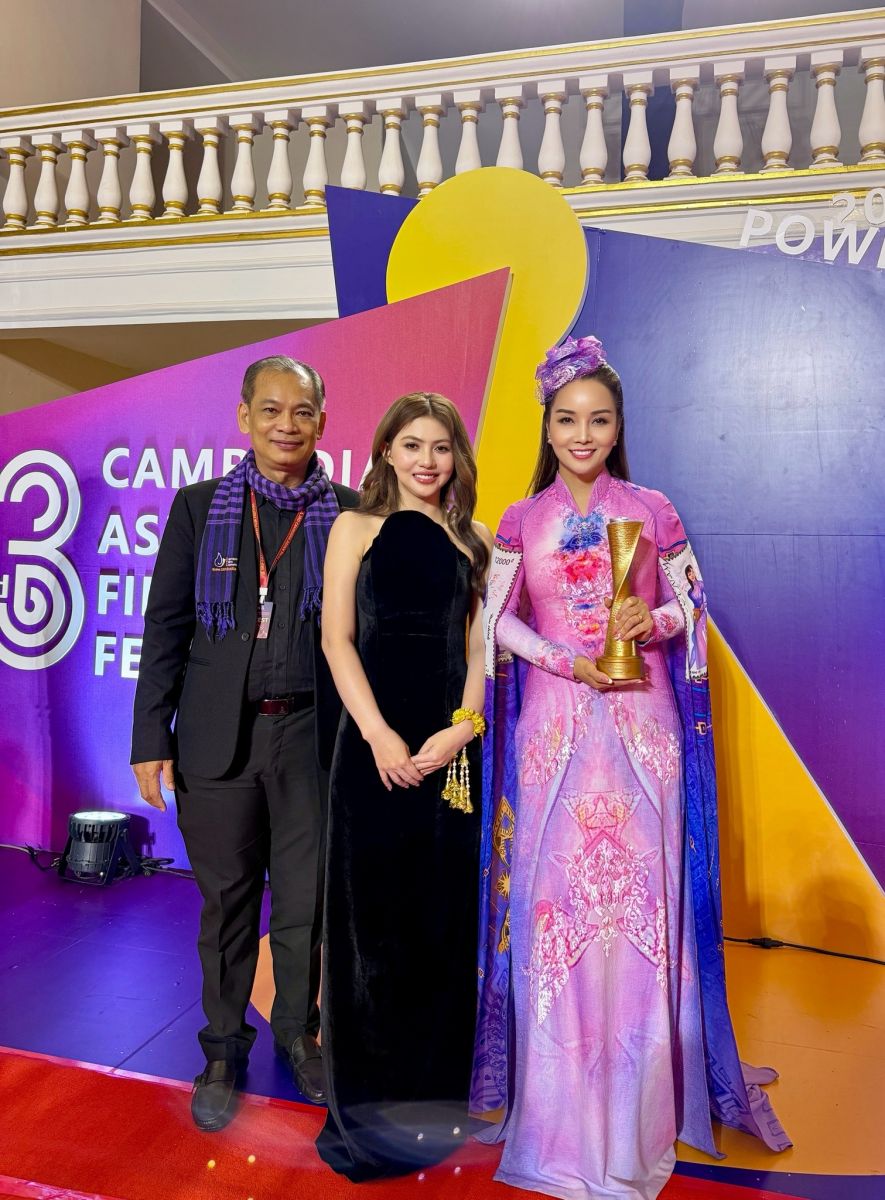 Xuất hiện trên thảm đỏ với tà áo dài của NTK Đỗ Trịnh Hoài Nam, đạo diễn – nhà sản xuất – diễn viên Mai Thu Huyền xúc động chia sẻ: “Trong hai năm qua, tôi đã đi hơn 20 quốc gia để quảng bá bộ phim này. Mỗi giải thưởng nhận được không chỉ là niềm tự hào cho ê-kíp mà còn là cơ hội giới thiệu hình ảnh đất nước, văn hóa, con người và âm nhạc Việt Nam đến bạn bè quốc tế.”