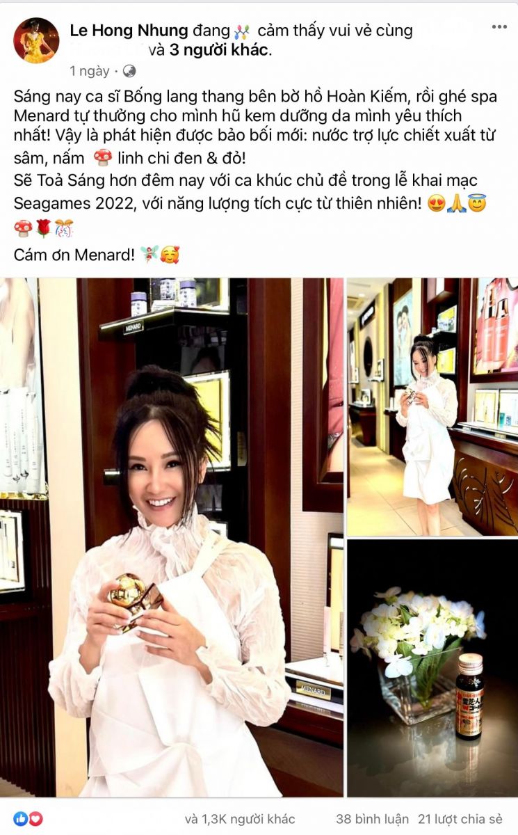 Chị chia sẻ: “Buổi sáng trước lễ khai mạc, mình đã tự thưởng một chuyến dạo bộ quanh hồ Hoàn Kiếm. Một phần bớt căng thẳng, một phần để tiện ghé qua Menard Shop & Spa. Một hũ kem Authent Cream II yêu thích, một hộp nước Sâm Linh chi Reishi Ginseng cũng đủ cho tâm trạng an tĩnh, cảm xúc cân bằng.”