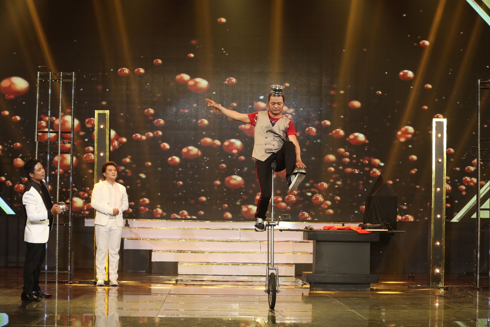 (ĐSVH) Tuấn Joker và bạn trợ diễn là diễn viên xiếc Hoàng Long Tú đã khuấy động sân khấu nhờ màn xiếc thăng bằng và tung hứng trên xe đạp 1 bánh.