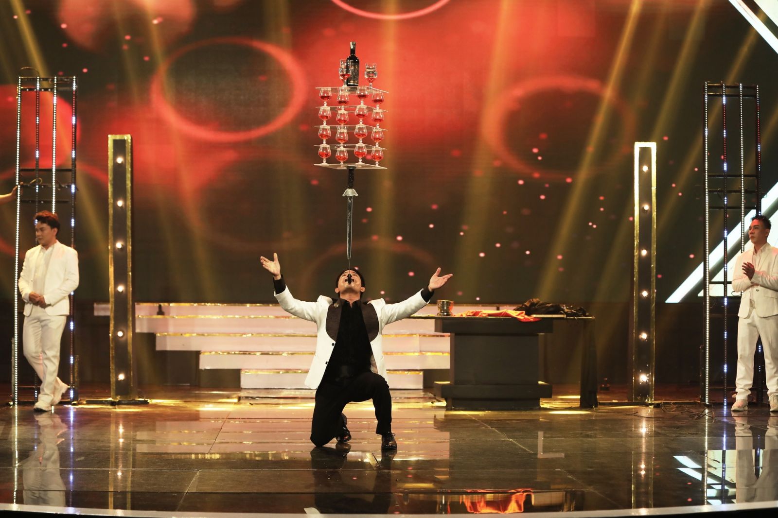 Nối tiếp màn trình diễn, Tuấn Joker sử dụng đinh, kéo và mũi khoan đâm thẳng vào mũi, cắn vỡ hàng loạt bóng đèn thủy tinh vô cùng nguy hiểm. Khép lại phần thi, anh chàng thể hiện khả năng giữ thăng bằng đế kiếm với 5 tầng ly rượu vang.