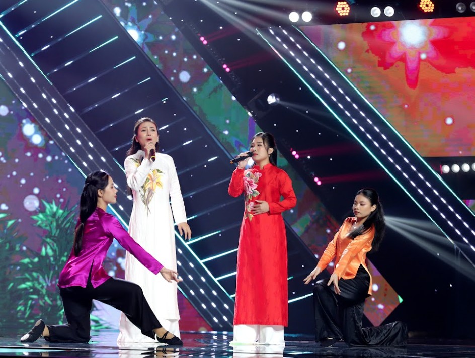 Mở màn cho đêm chủ đề Tình hoa, đội trưởng Long Nhật mang tới “hai bông hoa xinh đẹp” Cao Lan và Hoàng Phương Linh qua bản mashup Hoa cau vườn trầu – Duyên tình.