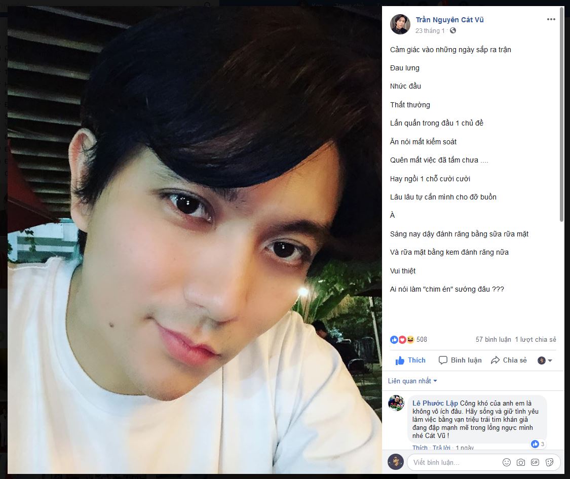Dòng trạng thái Tim chia sẻ trên facebook - ảnh FBNV