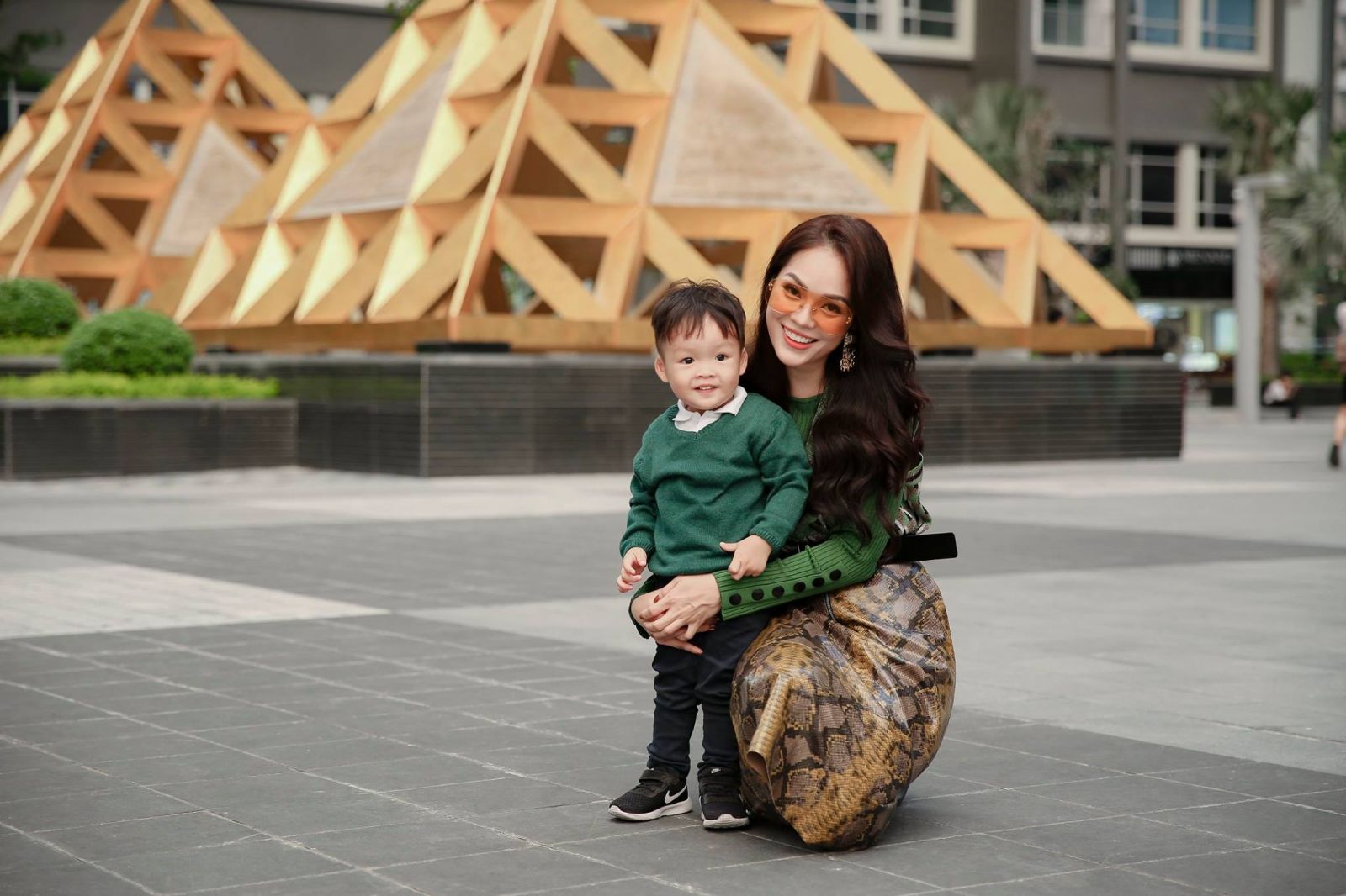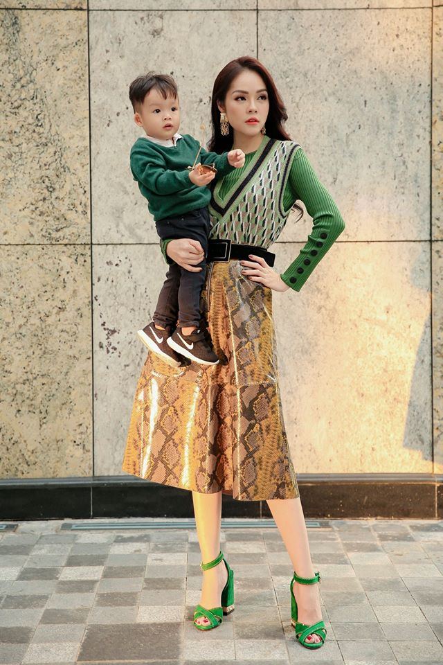 Hai mẹ con Dương Cẩm Lynh sành điệu trên phố