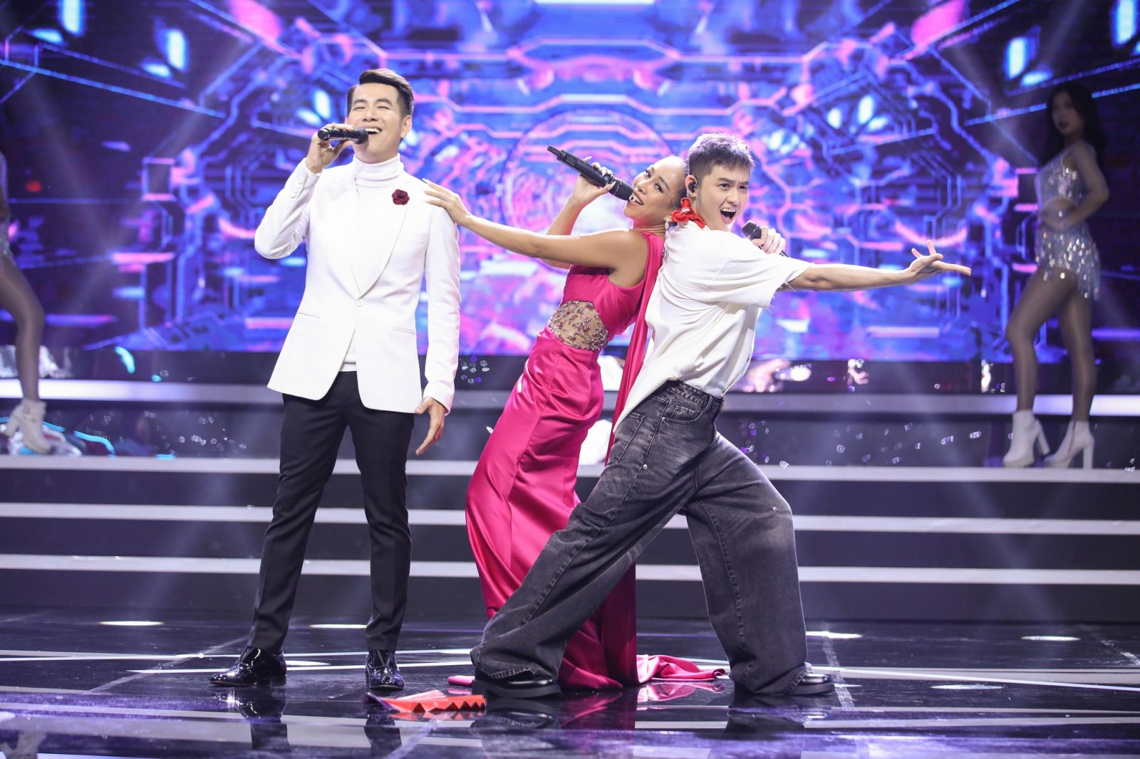Bên cạnh đó, anh được đánh giá cao khi trở thành đội trưởng và được nhận xét là “rất chiều gà cưng” của mình qua 3 tiết mục song ca đầu tiên. Có thể thấy, chỉ sau một thời gian ngắn tập luyện cùng đội trưởng, cả 3 thành viên trong đội đã tiến bộ vượt bậc, tự tin và bản lĩnh hơn trên sân khấu.