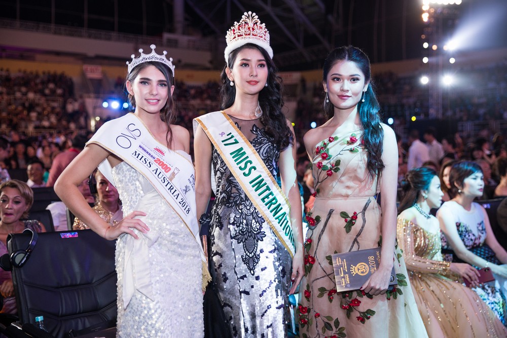 Tối 16.9, đêm chung kết Hoa hậu Việt Nam 2018 diễn ra thu hút sự tham gia của đông đảo các khách mời. Đặc biệt, sự xuất hiện của top 3 cùng vợ chồng trưởng ban tổ chức cuộc thi Hoa hậu Áo 2018 và bà Maria (chủ tịch kênh Fashion TV) nhận được sự quan tâm của khán giả. Có mặt tại thảm đỏ của sự kiện, dàn người đẹp Áo nổi bật khi diện chiếc váy đuôi cá được đính kết khéo léo. Đây là những mẫu thiết kế được NTK La Hồng lên ý tưởng và thực hiện riêng cho các cô gái đến từ Cộng hòa Áo, giúp các người đẹp khoe được vẻ trẻ trung, xinh đẹp khi đọ dáng cùng loạt nghệ sĩ Việt.