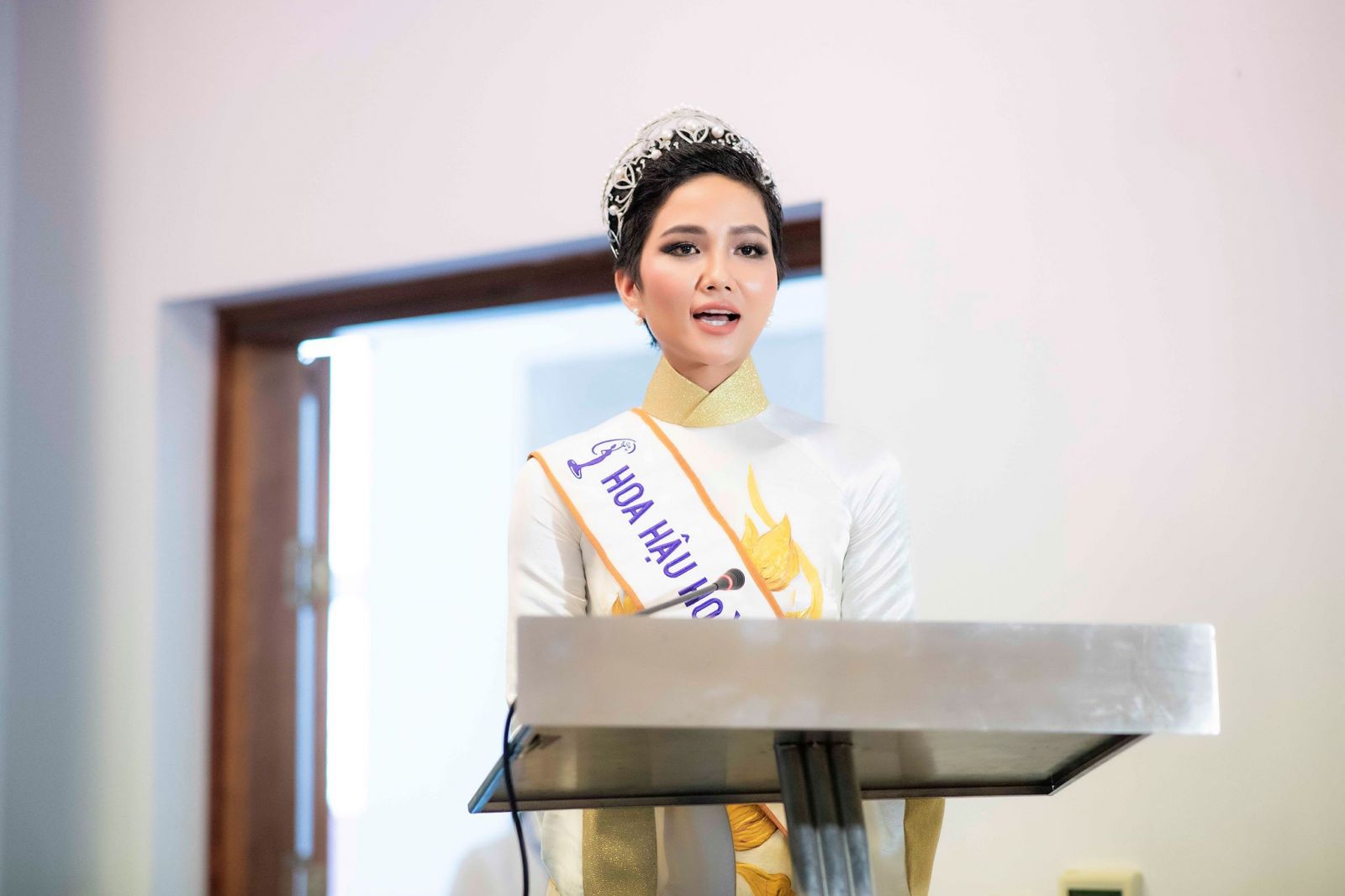 Với lần xuất hiện này, Hoa hậu H’Hen Niê chọn trang phục áo dài thêu họa tiết hoa sen vàng nổi bật trên nền trắng, kết hợp cùng vương miện. Người đẹp ít khi đội vương miện tại các sự kiện, vì vậy với lần này, cô nhanh chóng thu hút sự chú ý của mọi người. Hoa hậu chia sẻ, chiếc vương miện là minh chứng rõ ràng nhất cho những nỗ lực, cố gắng của mình và cô muốn dùng chiếc vương miện để truyền động lực cho các bạn trẻ, sẽ giống như cô, tìm ra lối đi đúng đắn cho tương lai, phát triển năng khiếu của bản thân, đóng góp nhiều điều tốt đẹp cho xã hội.