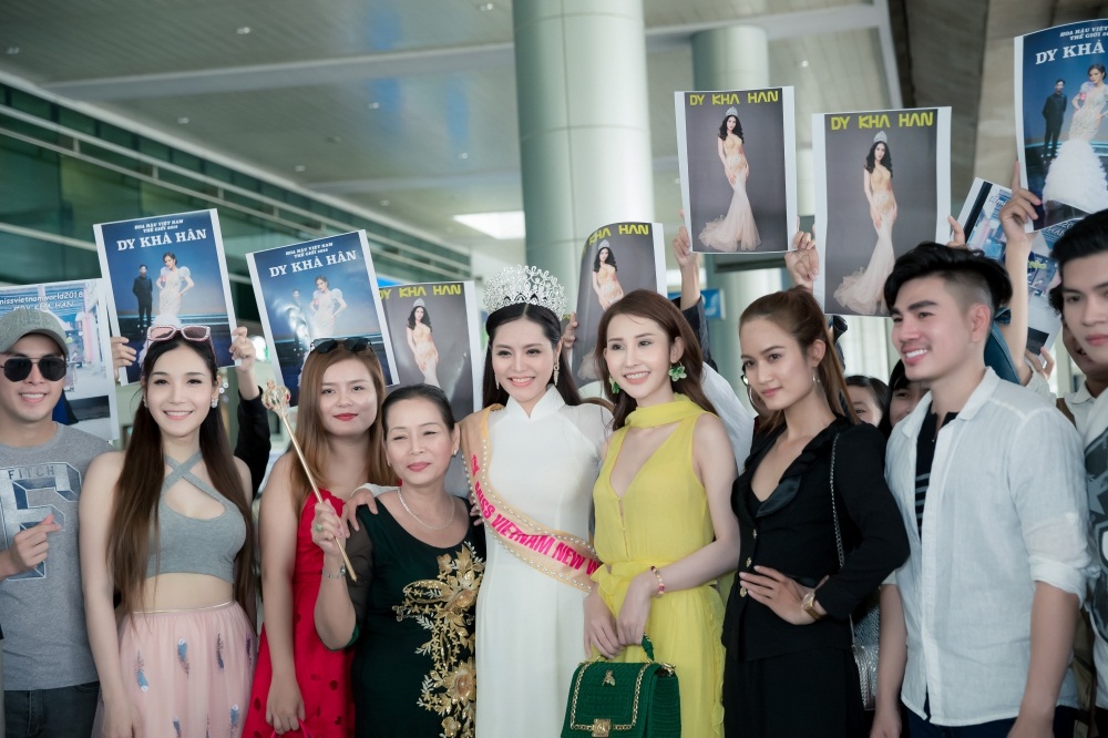 Trước đó, người đẹp sinh năm 1994 đã xuất sắc vượt qua nhiều người đẹp khắp thế giới để giành danh hiệu cao quý của cuộc thi. Với chiếc vương miện danh giá đội trên đầu, Dy Khả Hân nhanh chóng khuấy động khu vực sân bay, nhiều hành khách lập tức chú ý và xin lại chụp ảnh.