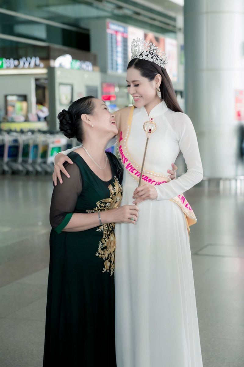 Ra đón Dy Khả Hân đáng chú ý có mẹ của cô và em gái. Cả hai mẹ con đã xúc động ôm chầm lấy nhau và chia sẻ niềm vui chiến thắng. Dy Khả Hân bộc bạch mẹ chính là hậu phương vững chắc – người luôn ủng hộ và dõi theo mọi hoạt động của cô. “Không có mẹ chắc chắn sẽ không có Dy Khả Hân của ngày hôm nay. Phần thưởng này, vương miện và danh hiệu này thật sự Khả Hân muốn dành đến cho mẹ…”