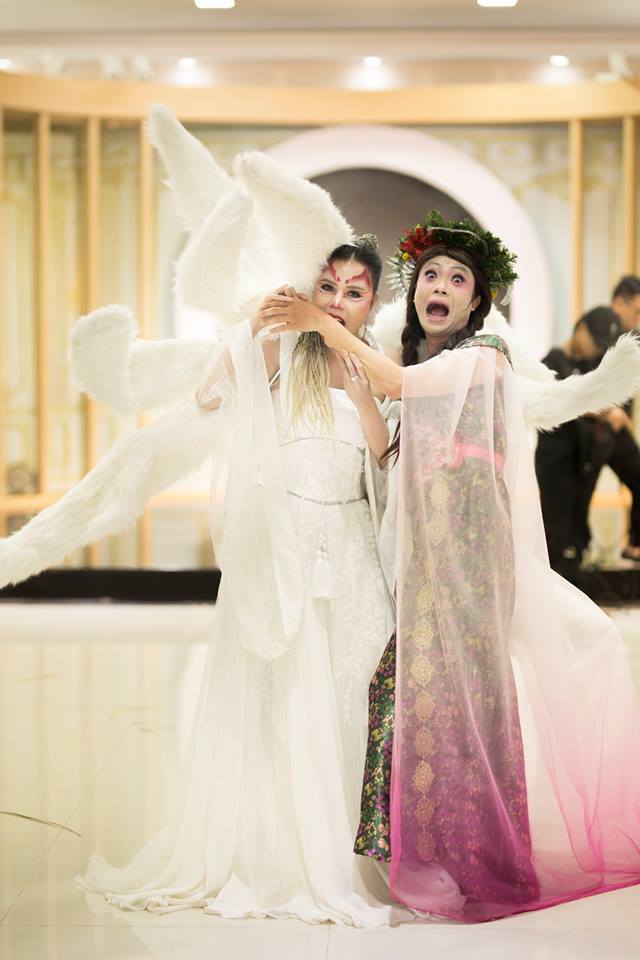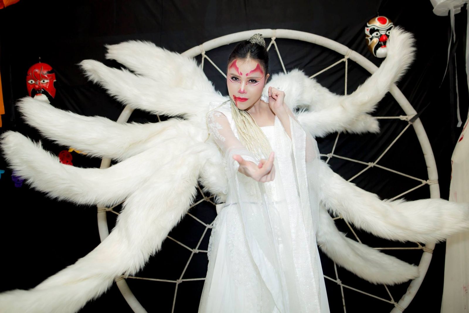 Nữ ca sĩ xuất hiện với bộ trang phục màu trắng và 9 chiếc đôi Hồ Ly được gắn tỉ mỉ trên bộ trang phục. Cùng với gương mặt rùng rợn, dính đầy máu, Hồng Gấm đã khiến nhiều người phải đứng tim, hết hồn, mất ăn, mất ngủ.