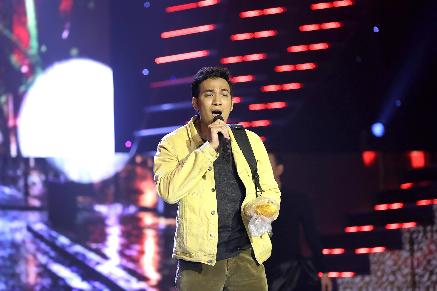 Huỳnh Trường Thịnh mê hát đến mức cầm ổ bánh mì trên tay suốt tiết mục