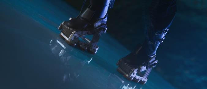 Đôi giày nam châm đặc biệt này được thiết kế theo phong cách của những đôi giày phản lực với bộ chuyển đổi titan để tạo ra dòng điện. Khi được khởi động, một lượng điện từ lớn được giải phóng tạo nên một lực hút cực khủng giúp người mang dễ dàng dính chặt trên tất cả các bề mặt dù là dựng đứng. Các tấm nam châm lớn được đặt dưới gót chân và xương khớp ngón chân để giảm bớt áp lực, điều chỉnh cân bằng trọng lực khi di chuyển. Nhờ sự trợ giúp của đôi giày nam châm này, Johnny English và người trợ lý Bough của mình đã dễ dàng thâm nhập vào chiếc thuyền bí mật của Ophelia – mỹ nhân bị tình nghi dính líu trong vụ án đánh cắp thông tin mật nhưng với sự “khéo léo” của mình, một lần nữa quý ngài điệp viên lại biến việc đột nhập bí mật không còn là bí mật nữa.
