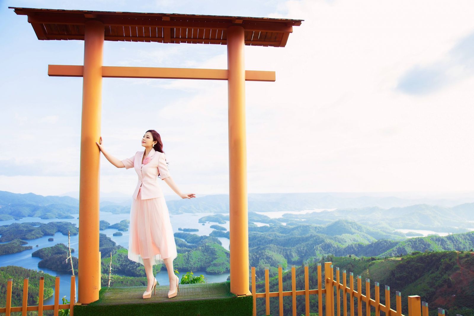 Để có thể ngắm nhìn và tận hưởng trọn vẹn nhất vẻ đẹp của hồ Tà Đùng, Kim Thanh Thảo cùng ekip đã tới đây vào đúng mùa "tích nước". Đây là thời điểm lý tưởng nhất, bởi giai đoạn từ tháng 7 cho tới tháng 12 là lúc mực nước tại hồ dâng cao. Điều này tạo nên khung cảnh một màu xanh thẳm xen lẫn xung quanh là những rừng cây um tùm xanh mát. Tất cả góp phần tạo nên vẻ đẹp cuốn hút cho những hòn đảo xinh tươi nằm gần hồ.