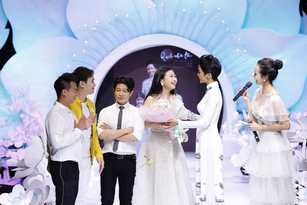Hoa hậu Hoàn vũ VN 2017 cùng dàn mẫu nhí tham gia trình diễn bộ sưu tập áo dài mới nhất của nhà thiết kế Thuận Việt.Mẫu áo dài của H'Hen Niê được thiết kế theo phom dáng truyền thttống. Hoạ tiết là hình ảnh khu chợ nổi đặc trưng của vùng đồng bằng sông Cửu Long được vẽ sketch trên nền vải lụa trắng.