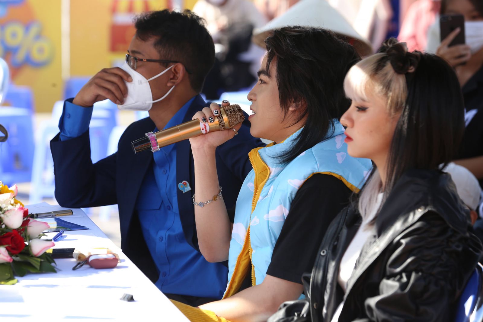 Trước lời nhận xét của nam giám khảo, đại diện nhóm nhảy đến từ Trường THPT Bảo Lộc chia sẻ: “Em cũng muốn thể hiện hết tinh thần cho đúng với bài nhảy nhưng mà với tụi em bây giờ khẩu trang không còn là một dụng cụ để tạo điểm nhấn. Khi đeo lên mặt, chúng em thật sự cảm thấy buồn cho những ngày tháng vừa qua cũng như là tình trạng hiện tại của mọi người xung quanh. Bây giờ tình hình dịch bệnh đã được kiểm soát tốt nhưng chúng ta vẫn không thể nào chủ quan nên việc đeo khẩu trang vẫn luôn là điều cần thiết và bắt buộc để hướng tới tương lai tươi sáng, không còn dịch bệnh".