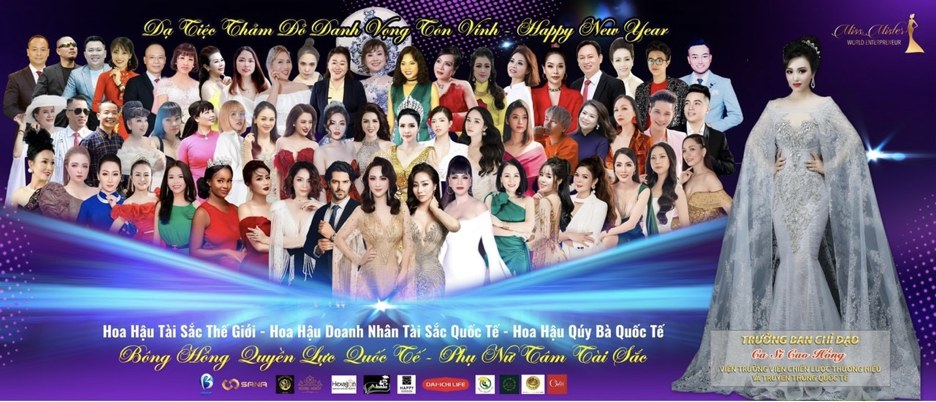 Viện Trưởng Ca Sĩ Cao Hồng lộng lẫy bên Dàn Hoa Hậu và Ban Tổ Chức Ban Giám Khảo