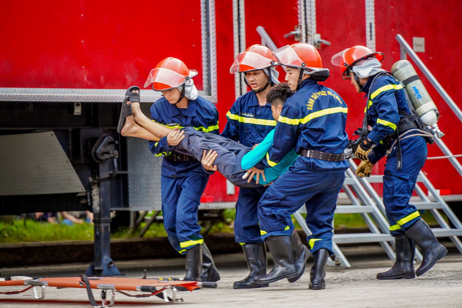 Khi toàn bộ nạn nhân giả định đã được giải cứu, các chiến sĩ nhập vai tiếp tục nhiệm vụ cứu tài sản, chống cháy lan. Cảm xúc vỡ òa khi Đại úy Lê Trung Dũng ra hiệu kết thúc chữa cháy. “Tôi cảm giác như mình đã vượt qua chính mình”, Song Luân chia sẻ.