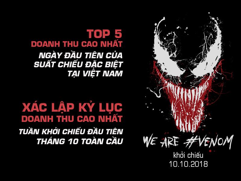 Venom vẫn tiếp tục là cái tên khuynh đảo phòng vé cuối tuần, bộ phim sẽ công chiếu tại các rạp trên toàn quốc từ ngày 10.10.2018.
