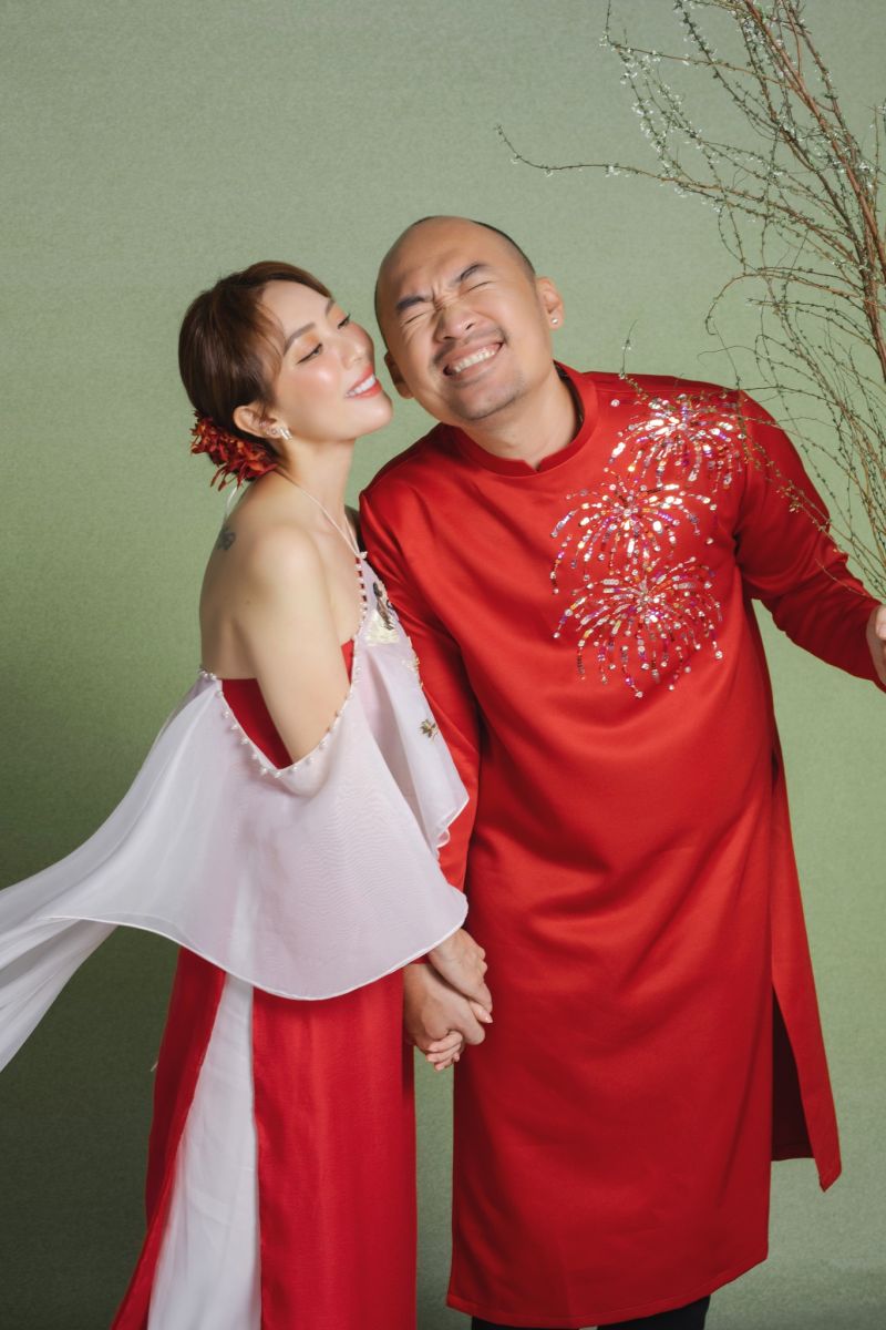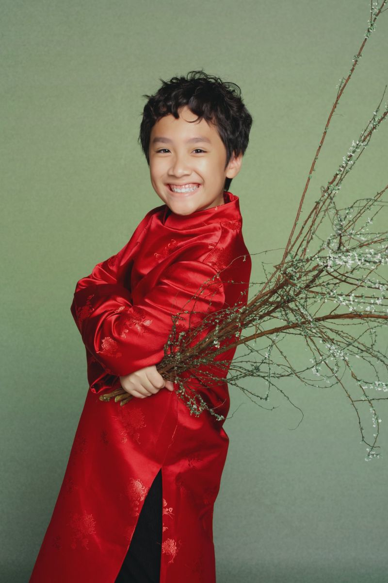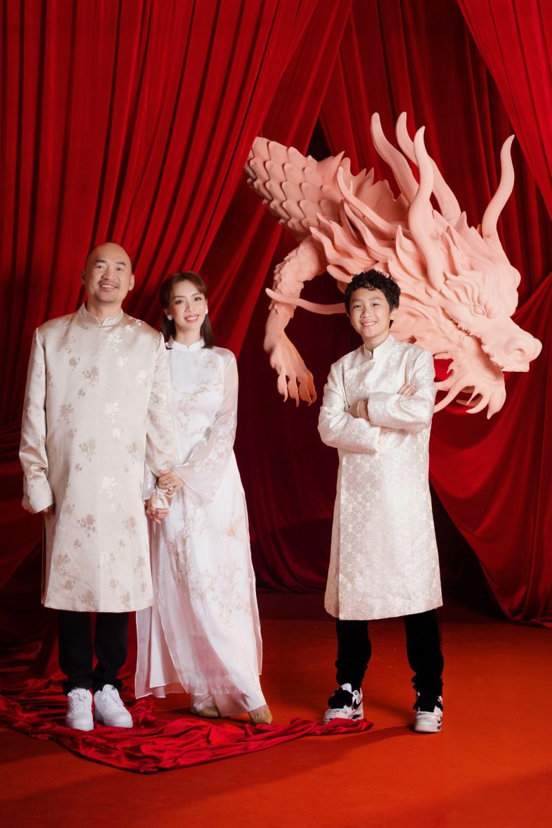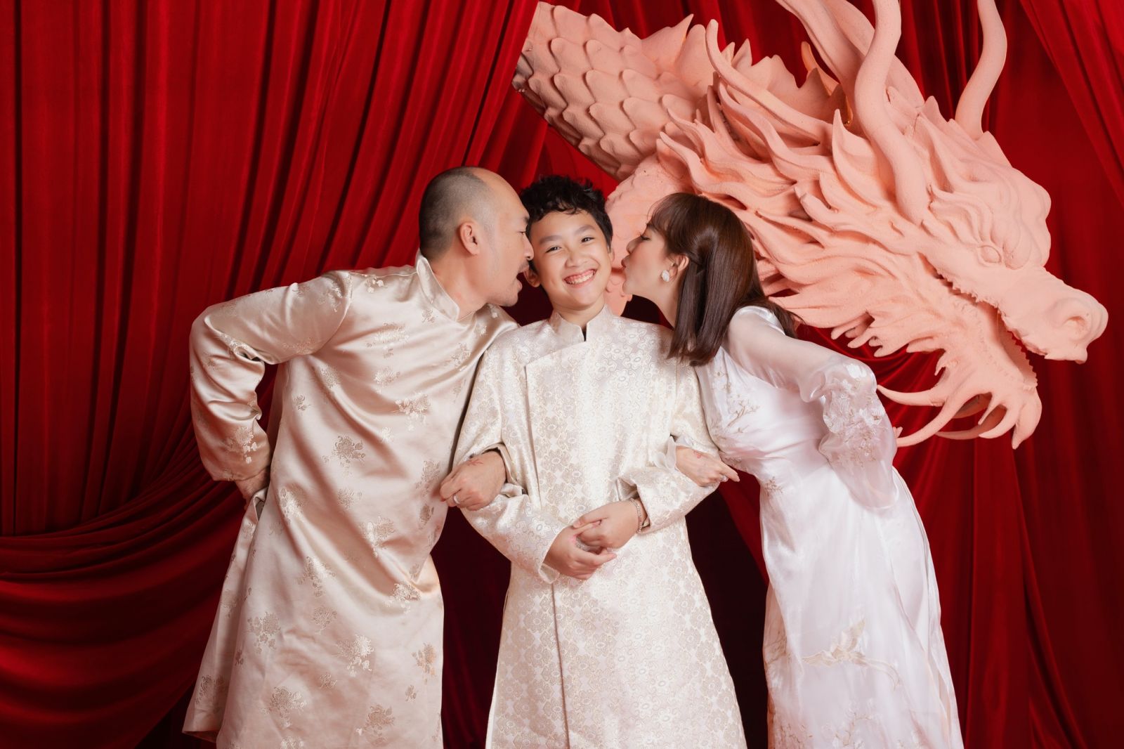 (ĐSVH) Vợ chồng nghệ sĩ Thu Trang - Tiến Luật vừa thực hiện bộ ảnh Tết trong trang phục áo dài. Đặc biệt, cậu con trai Andy cũng xuất hiện và cùng ba mẹ ghi lại những khoảnh khắc hạnh phúc, sum vầy chào đón mùa xuân sang.